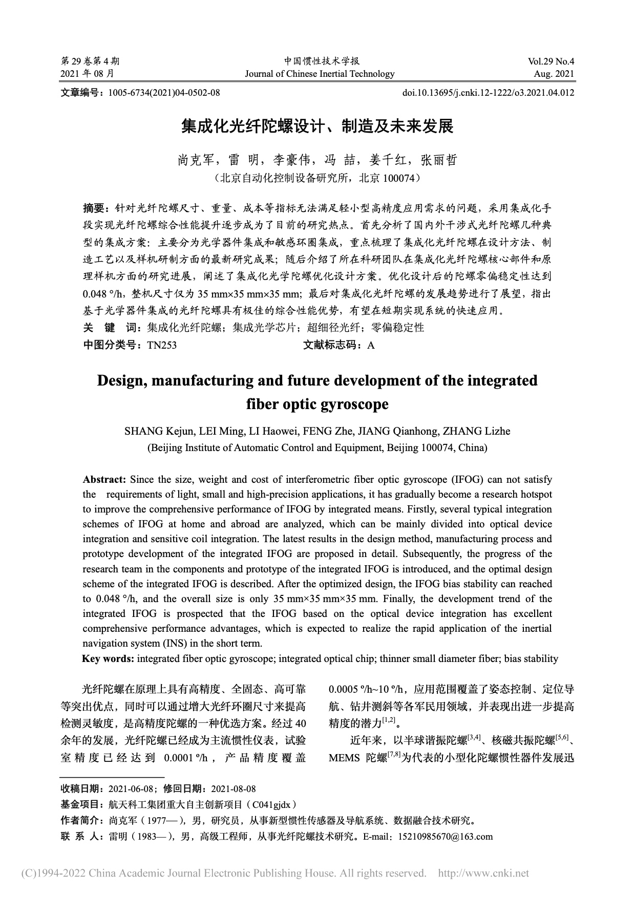 集成化光纤陀螺设计、制造及未来发展_尚克军