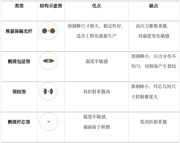 表1 各类保偏光纤的优缺点