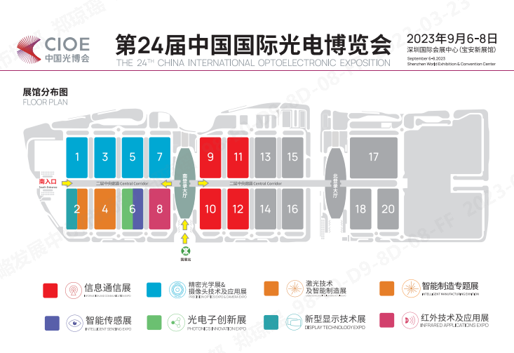 作为光电产业综合类展会,本次展会覆盖信息通信、激光、红外、紫外、精密光学、摄像头技术及应用、智能传感等版块,并着力光电行业和下游九大应用领域之间打造集商贸洽谈、国际交流及品牌展示为一体的专业交流平台。光电子创新展作为CIOE中国光博会同期展会之一,共享同期7展9大应用领域超10万名高质量高购买力精准专业买家资源。